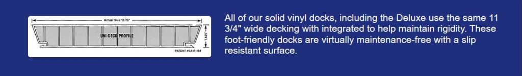 This is the longest-lasting and lowest maintenance dock available today. It will not corrode, splinter or warp.